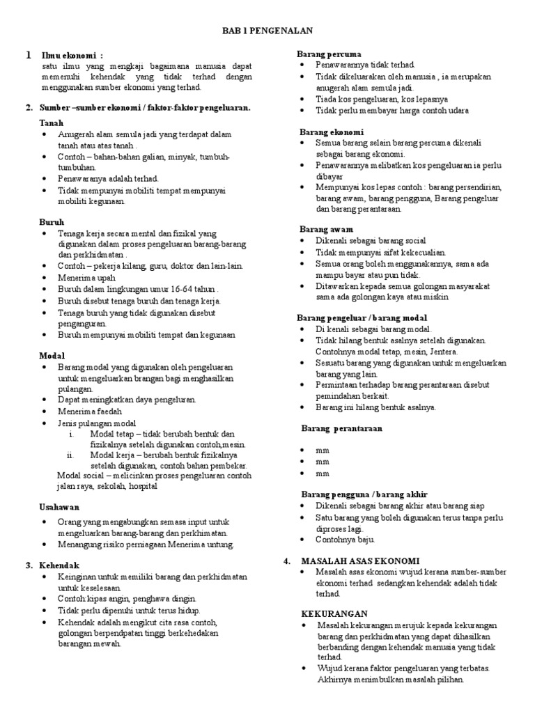 Bab 1 Pengenalan Kepada Ekonomi 1 Kandungan 1